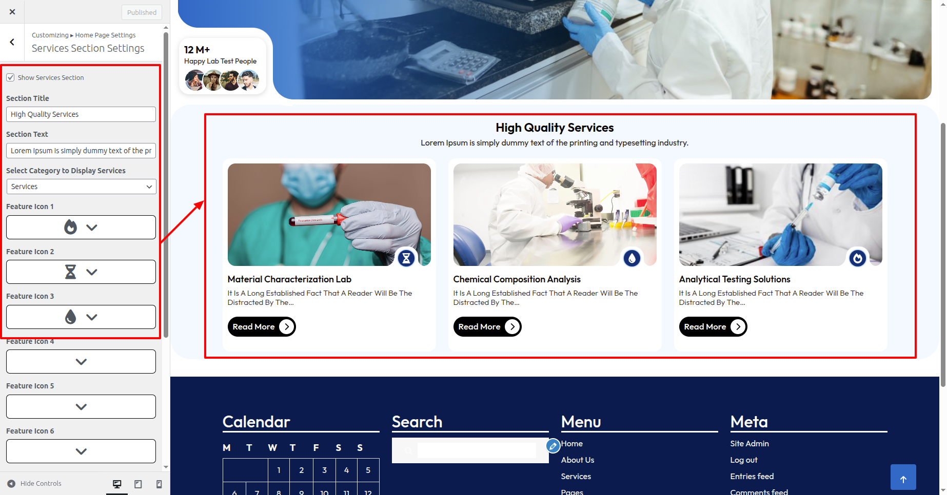 Select Services Section Settings from Appearance >> Customize >> Home Page Settings >> Services Section Settings .
