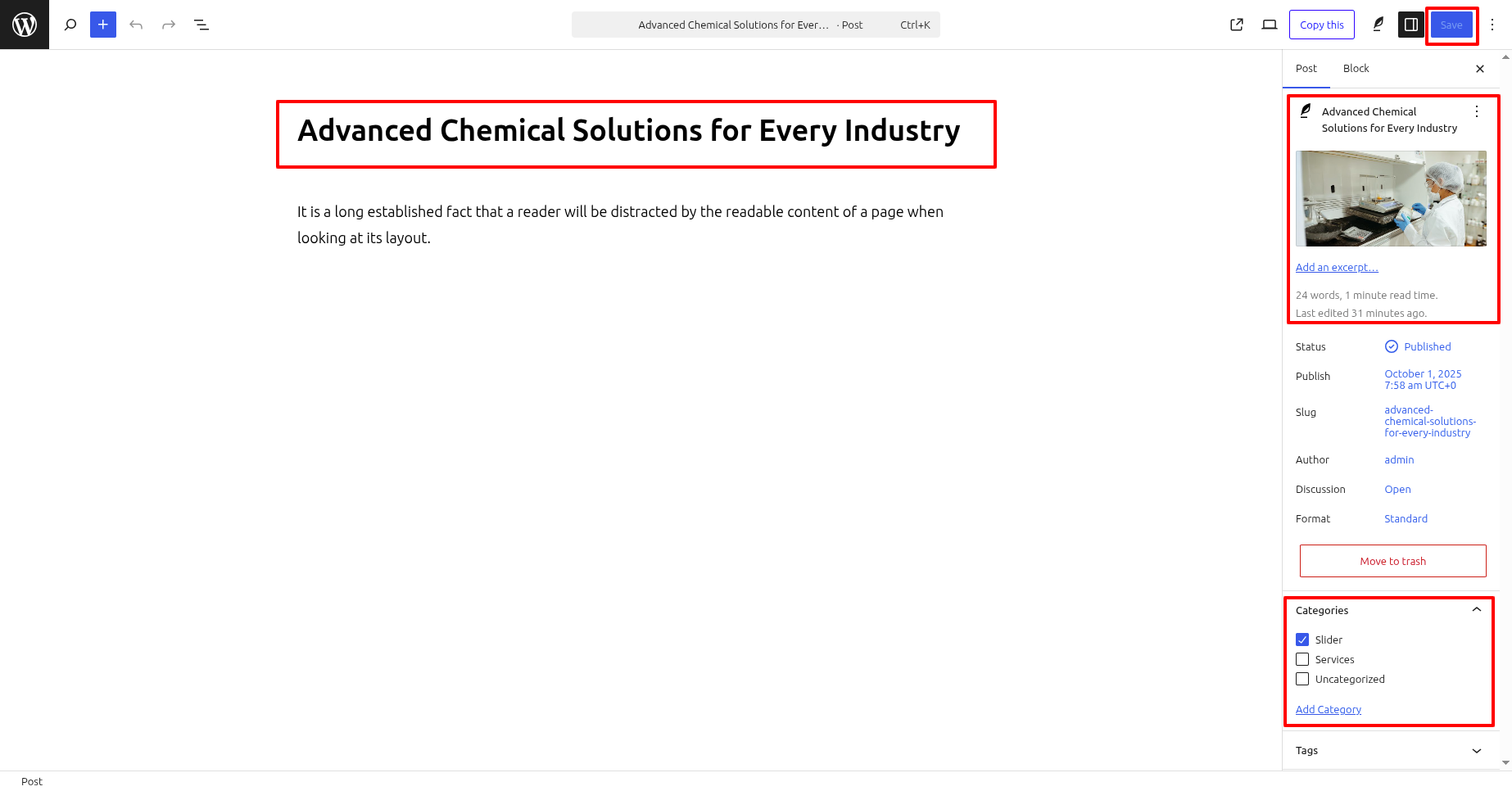 Welcome to the documentation for Chemical Laboratory Theme! This documentation is designed to guide you through the installation, setup, customization, and usage of our theme. Whether you're a beginner or an experienced WordPress user, this documentation will help you make the most out of our theme.