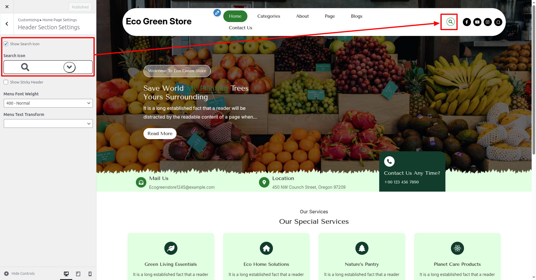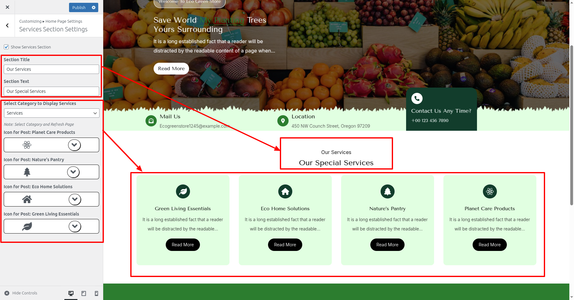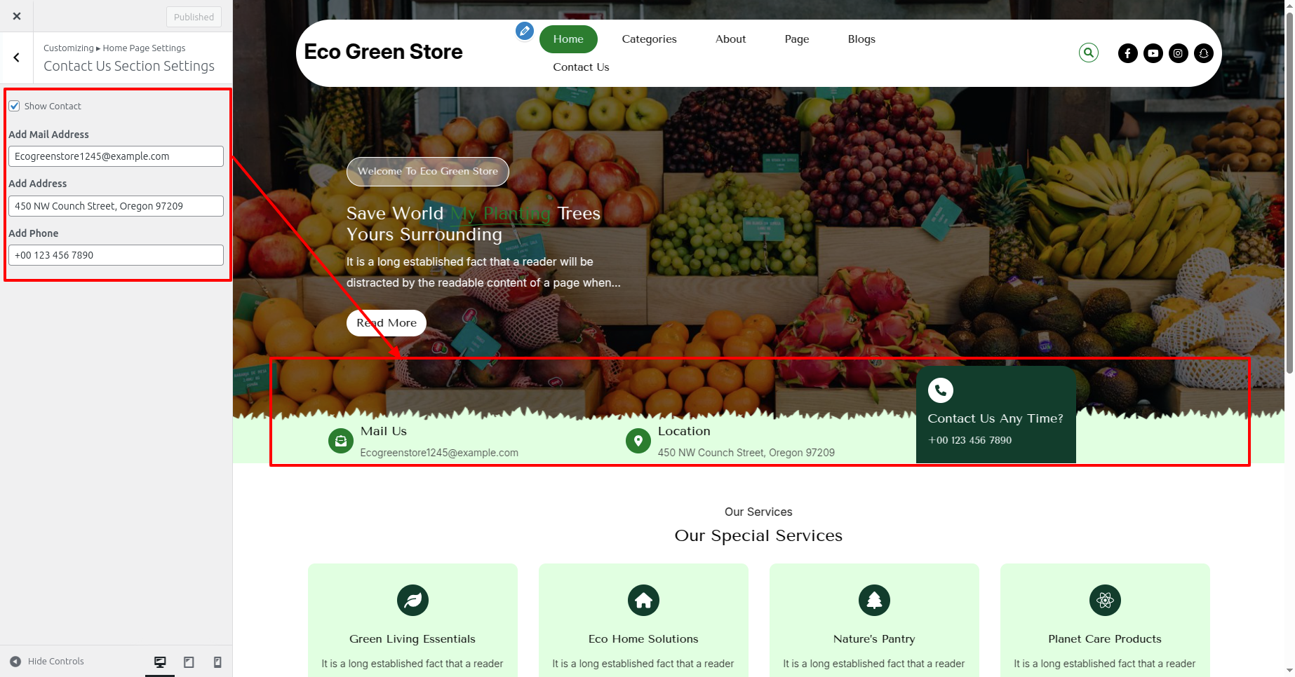 Select Contact Us Section Settings from Appearance >> Customize >> Home Page Settings >> Contact Us Section Settings .