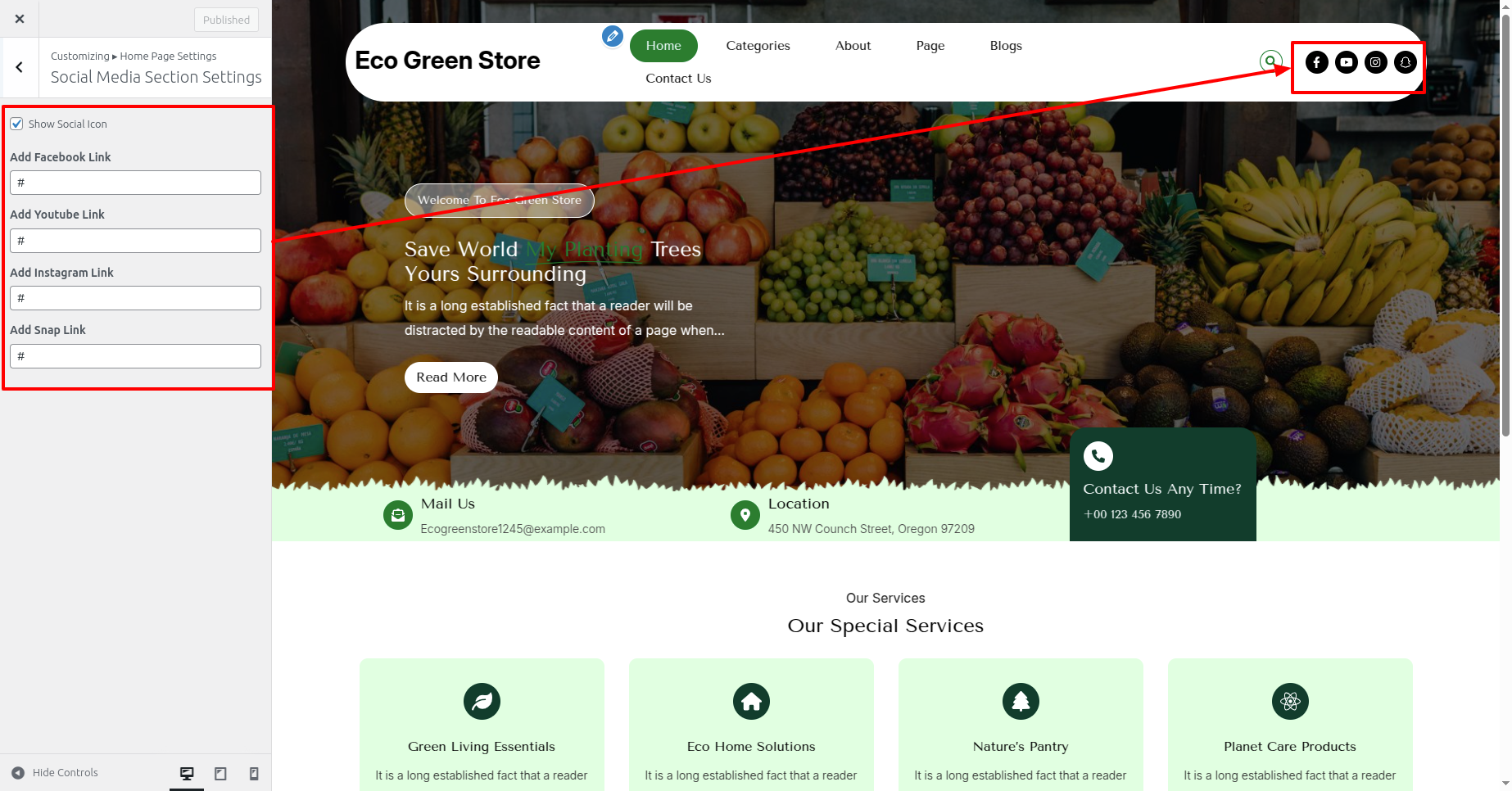Select Social Media Section from Appearance >> Customize >> Home Page Settings >> Social Media Section Settings .