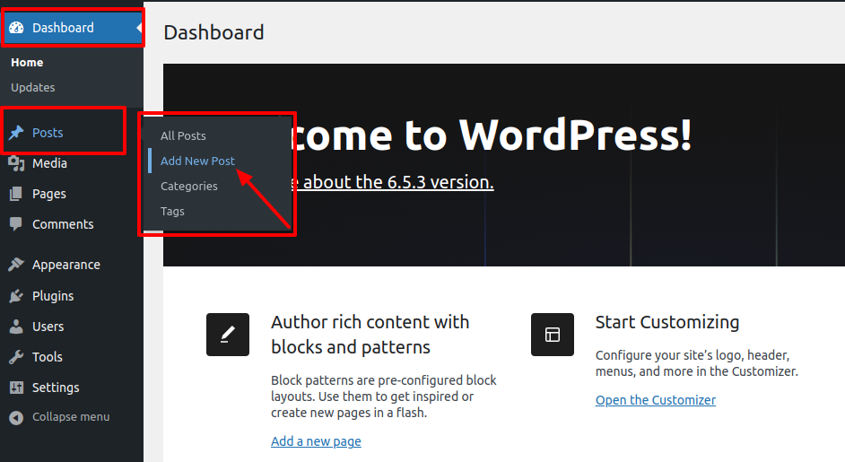 - Access the WordPress Administration Panel (Dashboard).