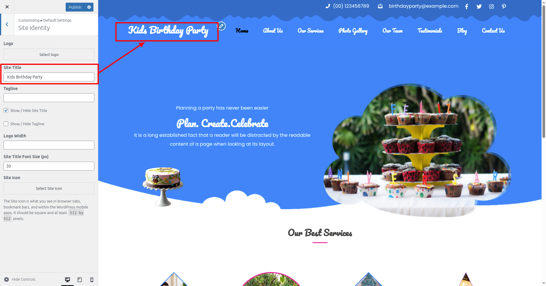 Select Site Identity from Appearance >> Customize >> Default Settings >> Site Identity .