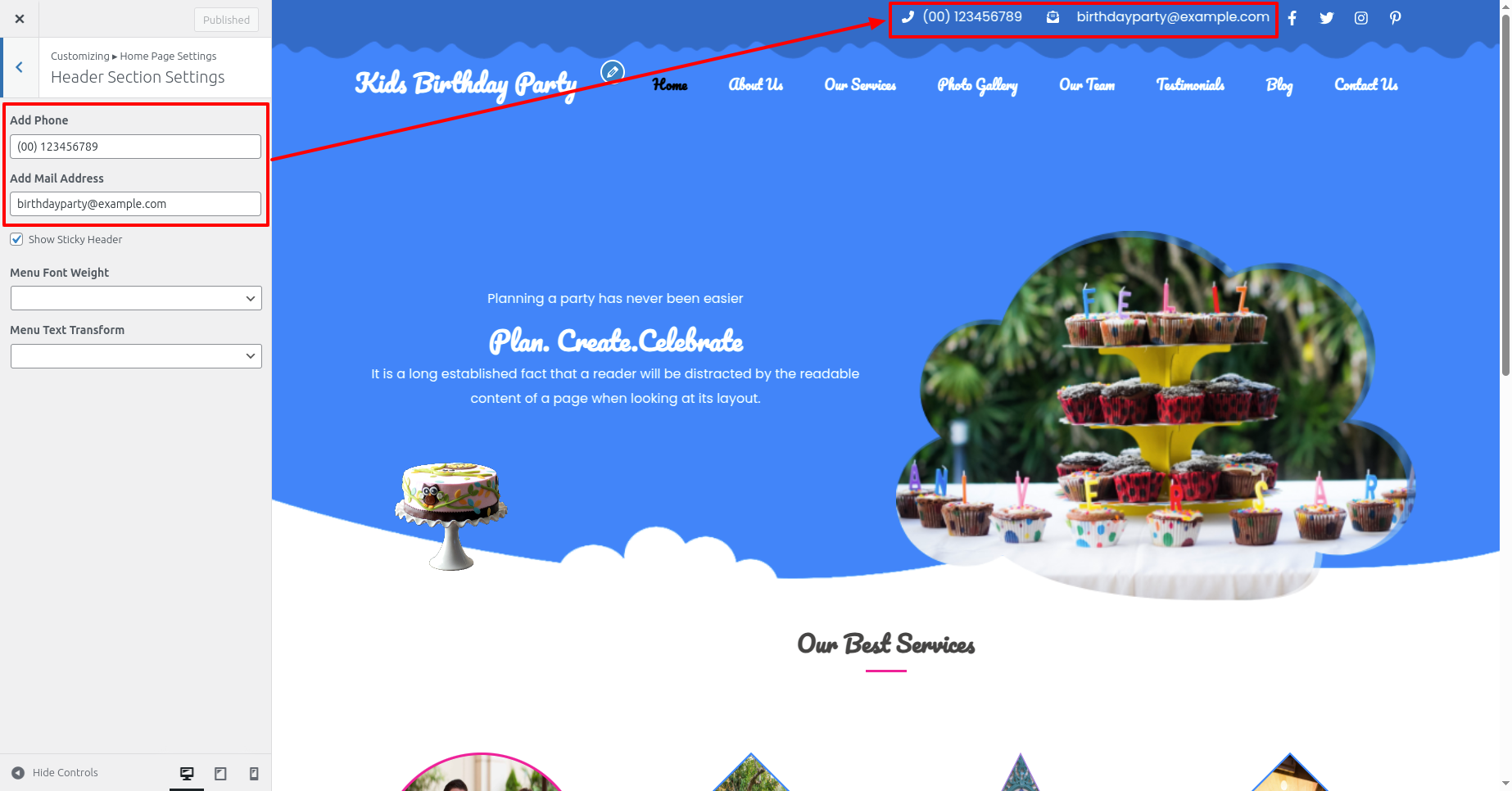 Select Header Top Section from Appearance >> Customize >> Home Page Settings >> Header Section Settings .