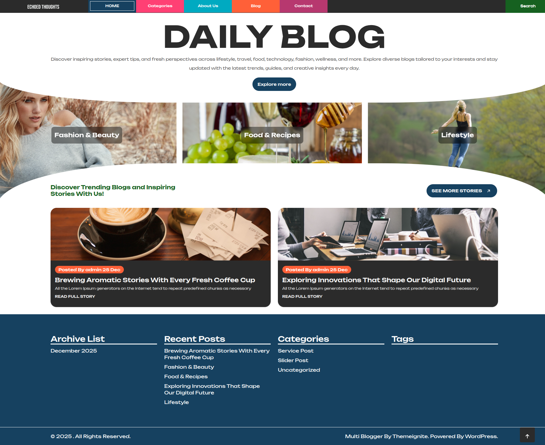 Welcome to the documentation for Multi Blogger Theme! This documentation is designed to guide you through the installation, setup, customization, and usage of our theme. Whether you're a beginner or an experienced WordPress user, this documentation will help you make the most out of our theme.
