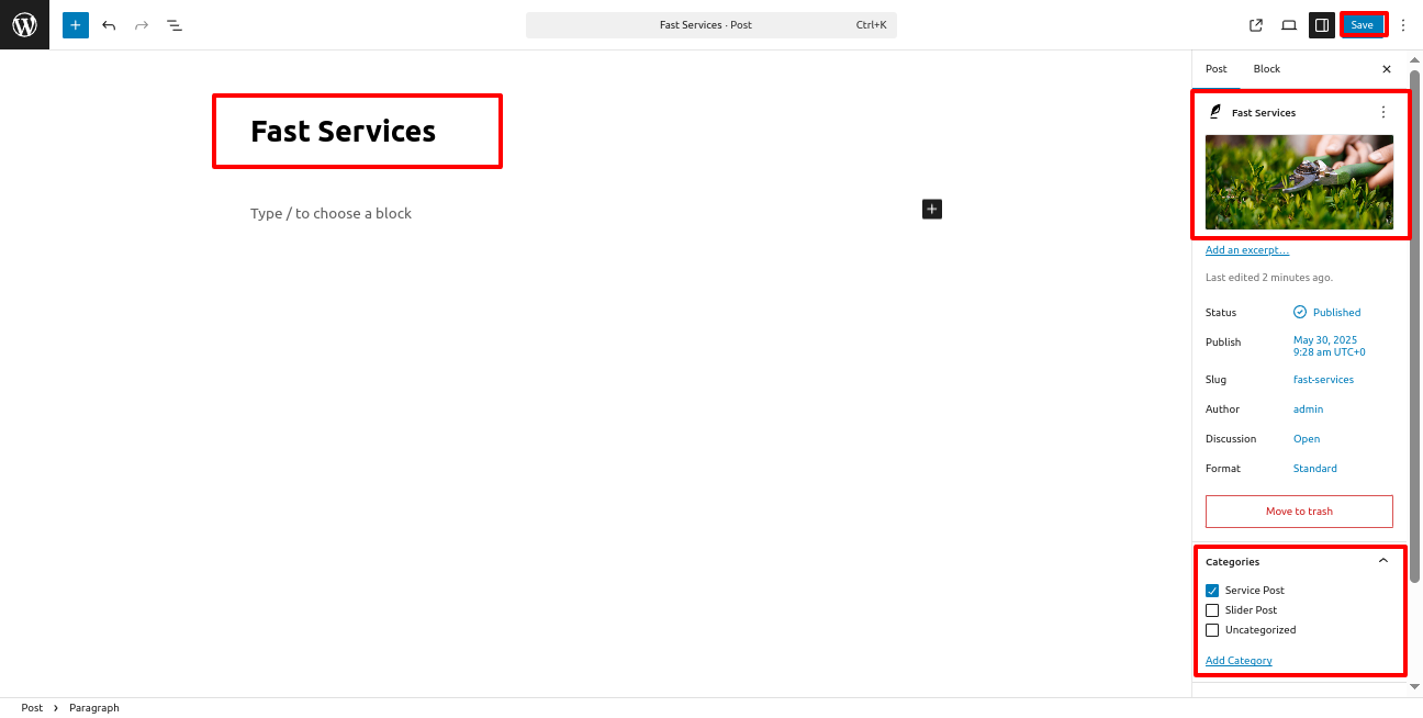 Select Service Section Settings from Dashboard >> Post >> Add New .