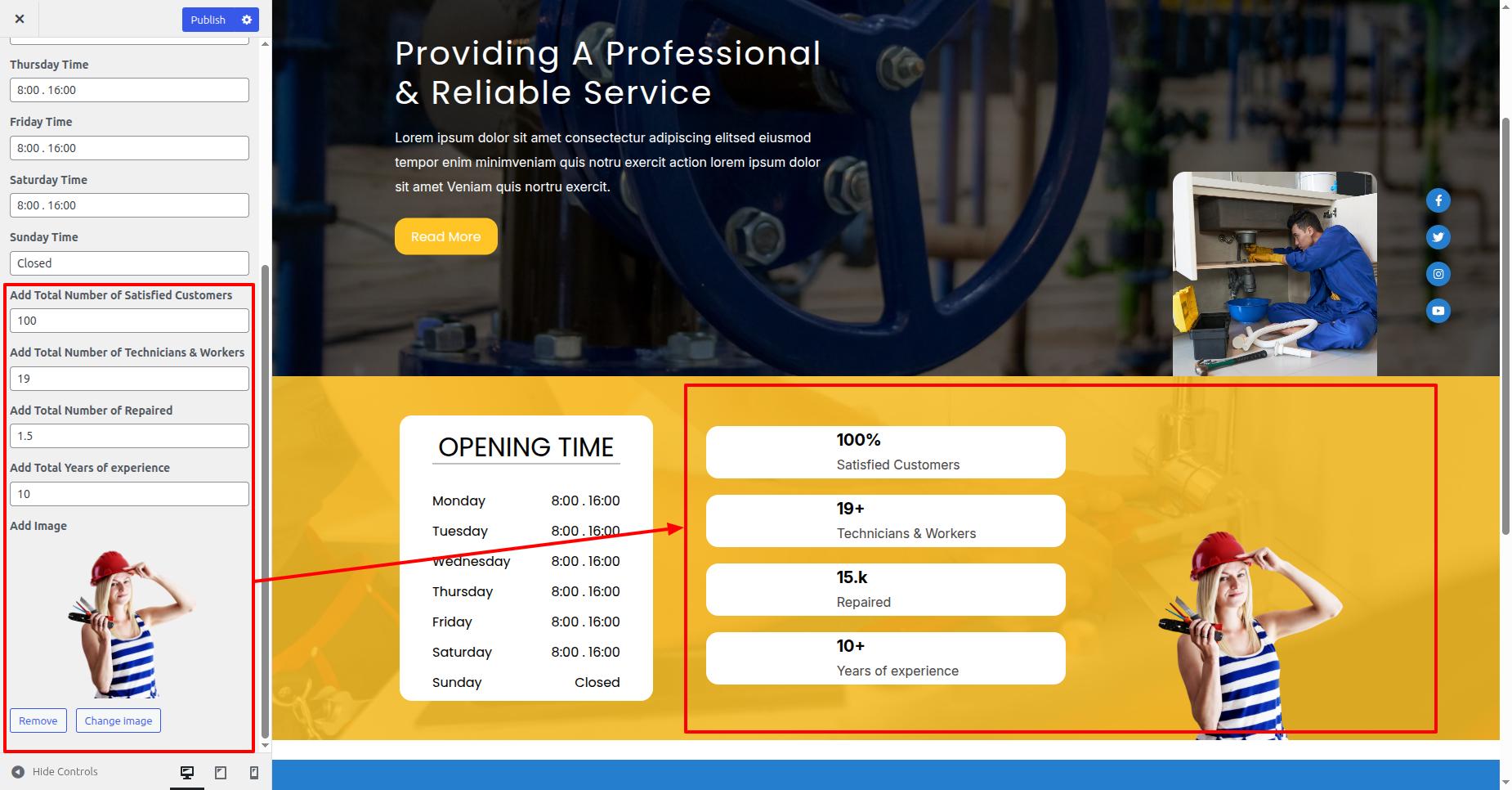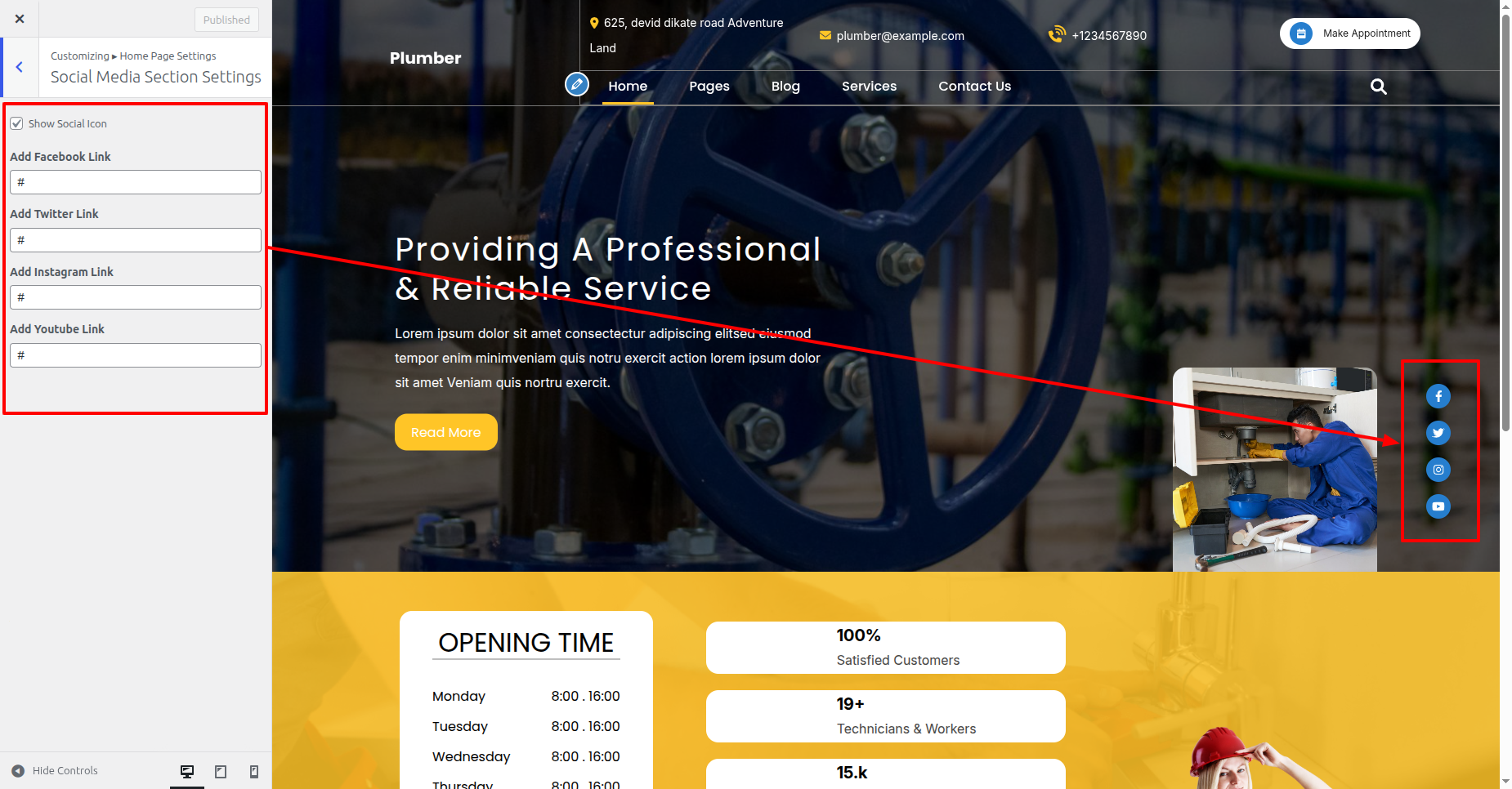 Select Social Media Section from Appearance >> Customize >> Home Page Settings >> Social Media Section Settings .