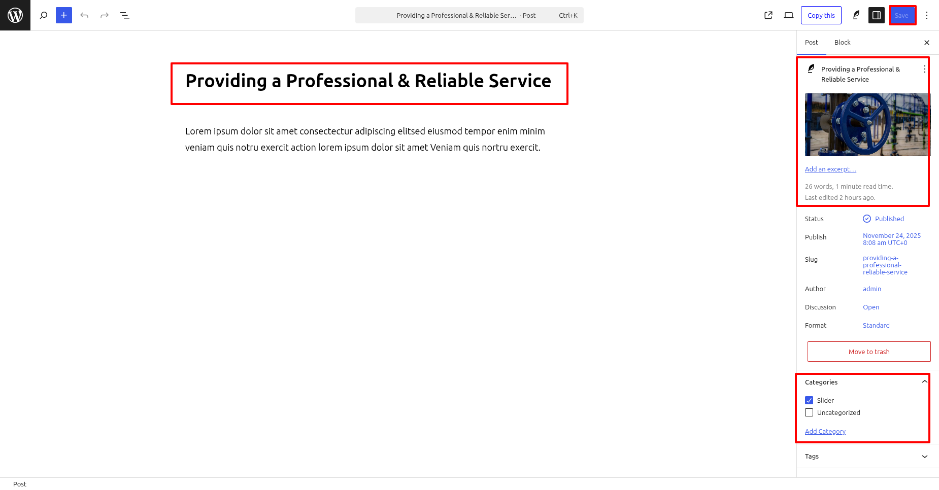 Select Slider Section Settings from Dashboard >> Posts >> Add New Posts .