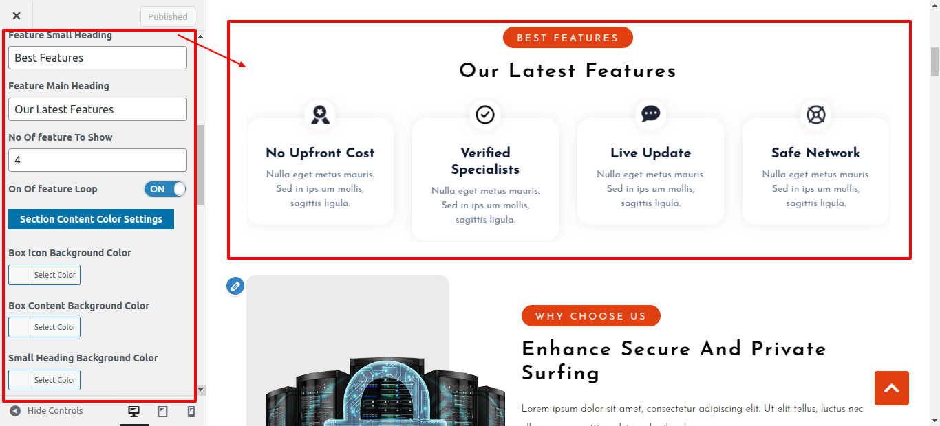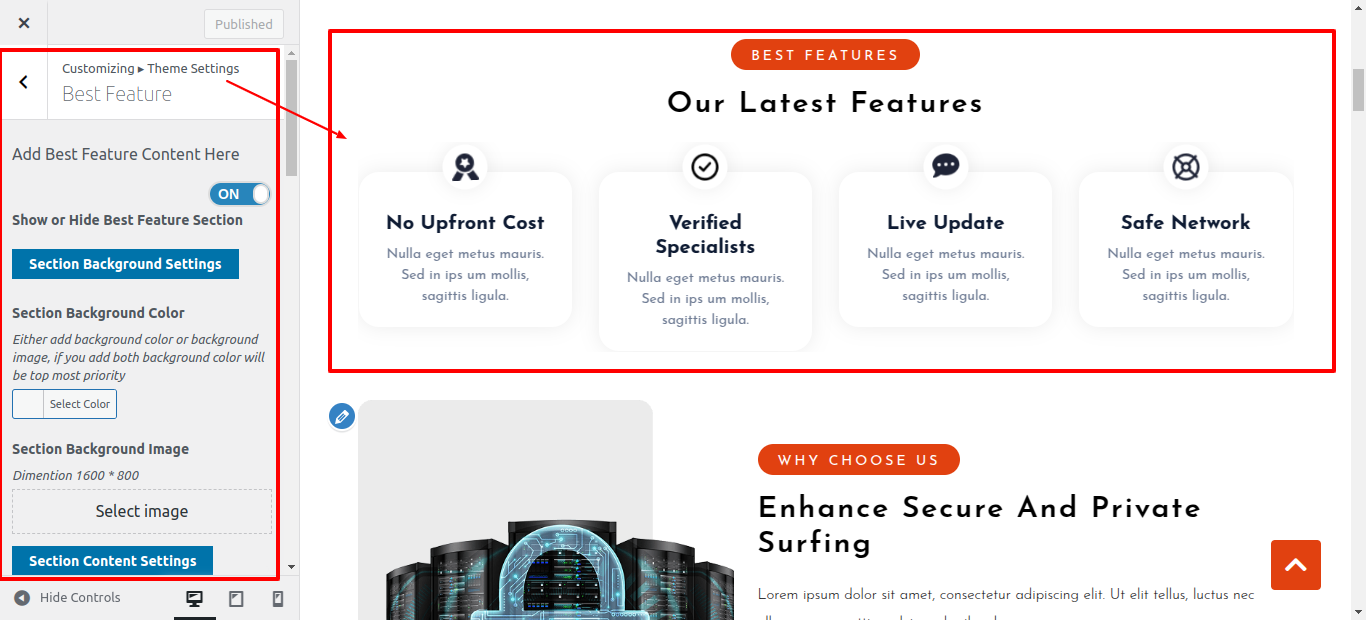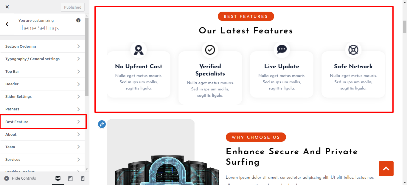 Go to Appearance >> Customize >> Theme Settings >> Best Feature to access the Best Feature settings.