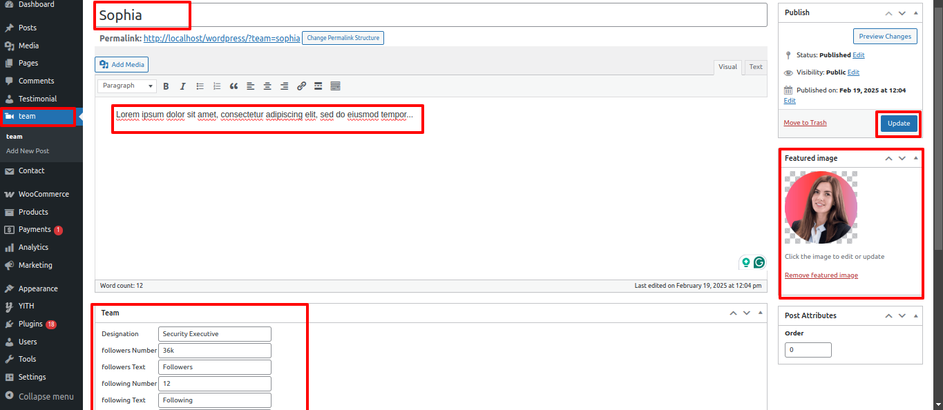 In this section the content is taken by the Post type named as "Team" for any changes of content you'll have to do following steps: