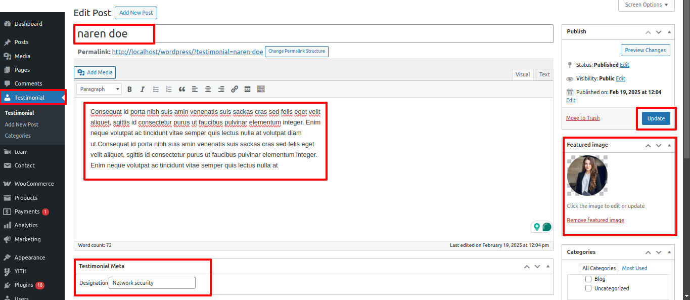 In this section the Testimonial is been created named as "Testimonial" for any changes of content you'll have to do following steps: