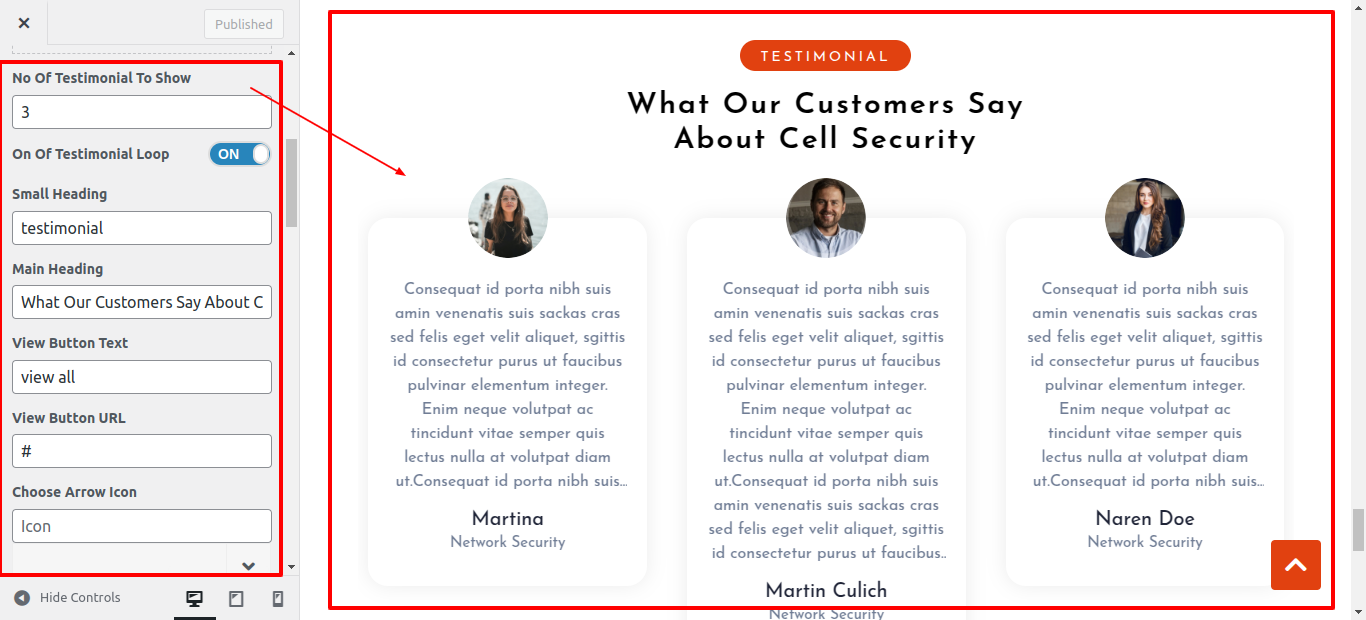 You can change how many slides there you want. Additionally, you can change the font family, font weight, font size, and the colors of the headings and subheadings and also settings are given for navigation arrows, and you can also select how many slides you want.