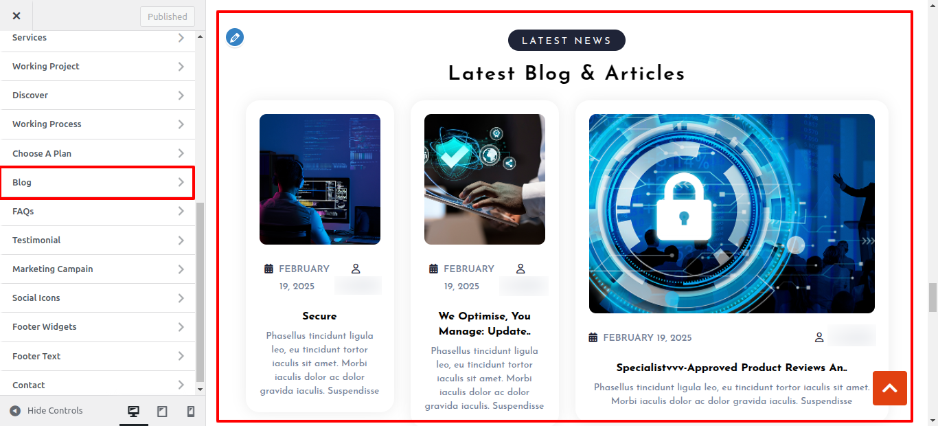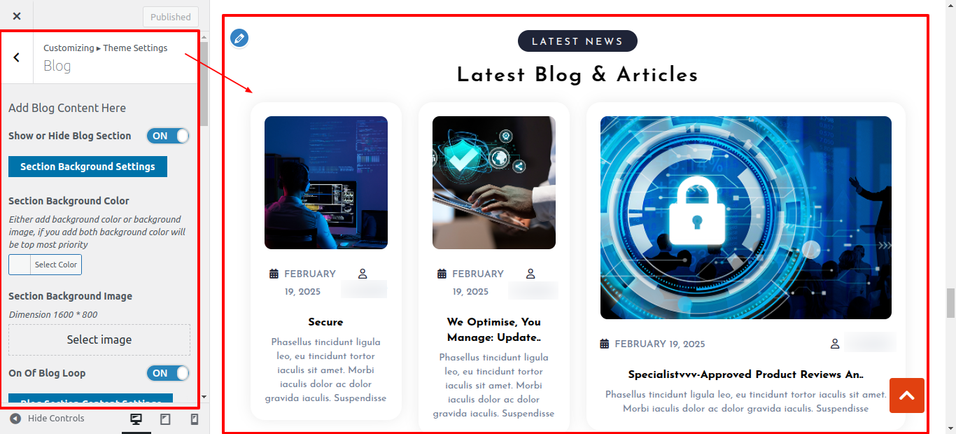 Go to Appearance >> Customize >> Theme Settings >> Blog to access the Blog settings.