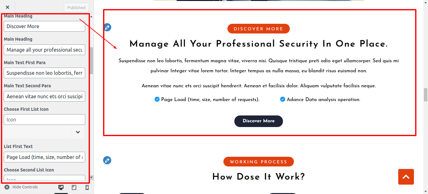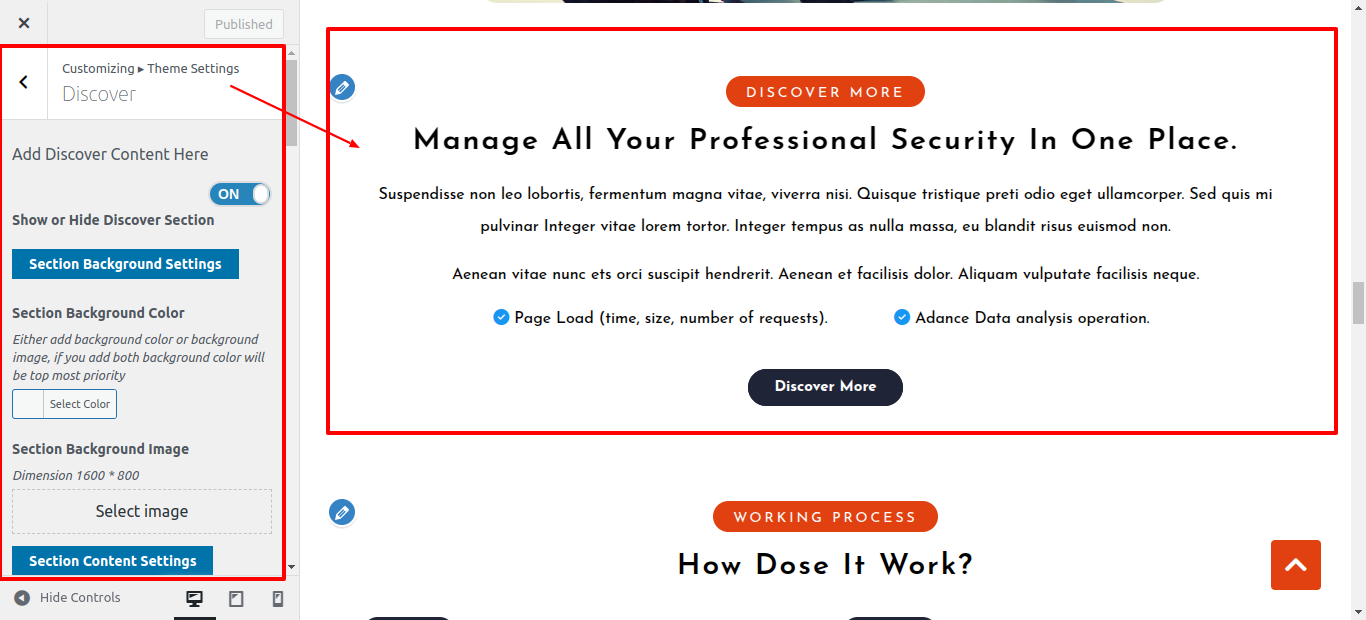 Go to Appearance >> Customize >> Theme Settings >> Working Process to access the Working Process settings.