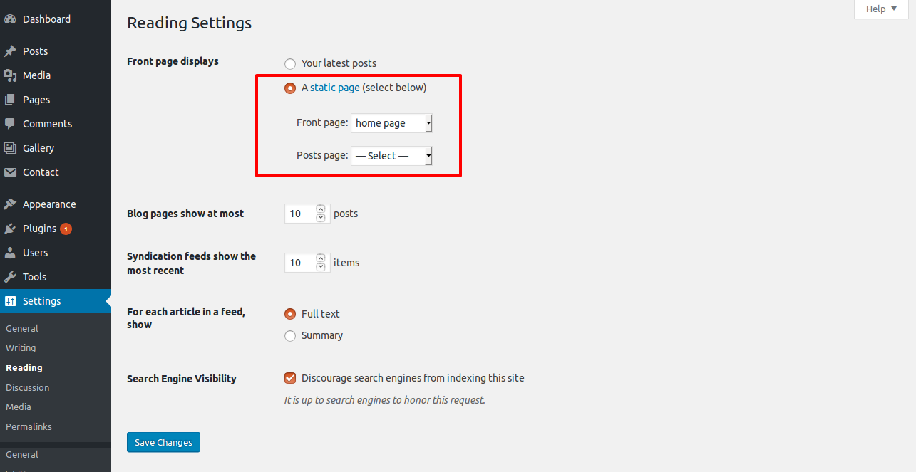 To set the home page: Go to Setting > Reading and select a static page for the Homepage under the Front Page Displays section.
