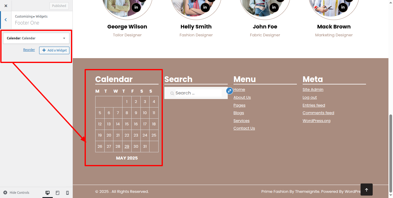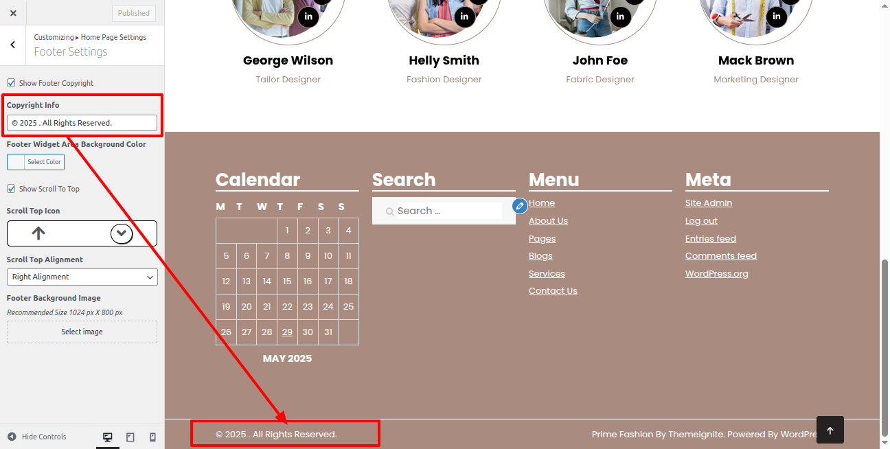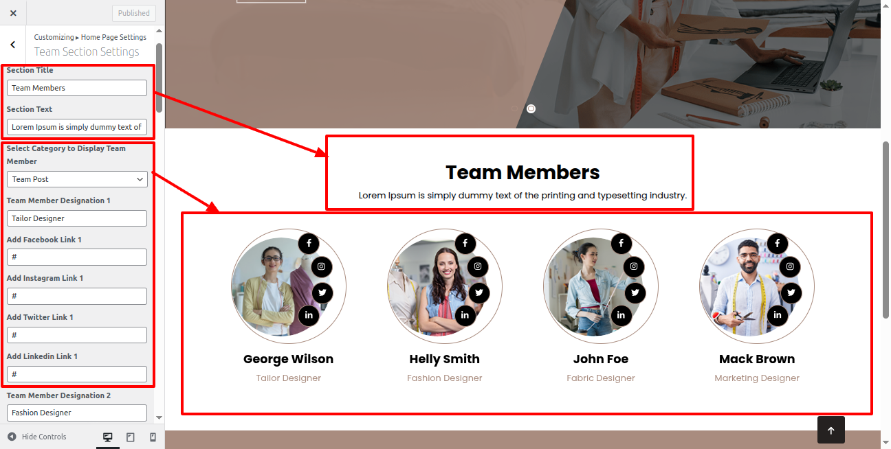 Select Team Section Settings from Appearance >> Customize >> Home Page Settings >> Team Section Settings .