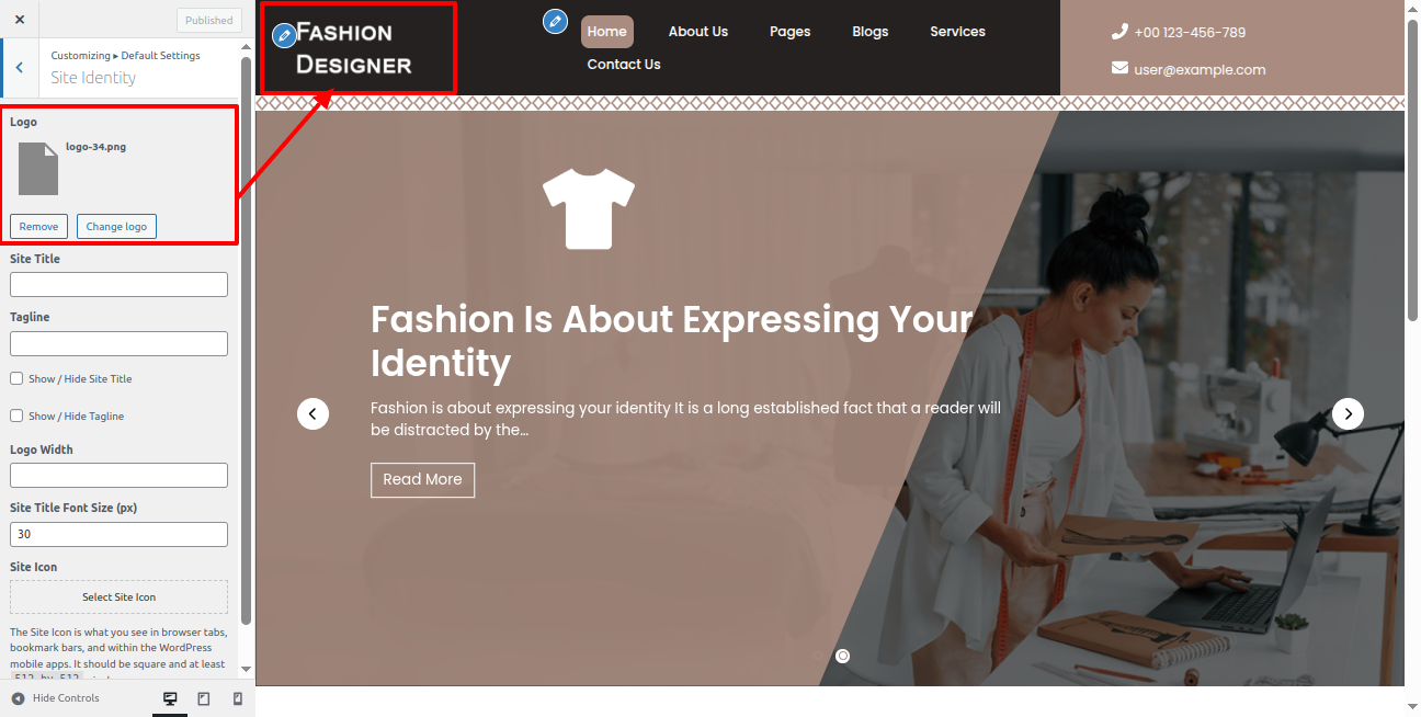 Select Site Identity from Appearance >> Customize >> Default Settings >> Site Identity .
