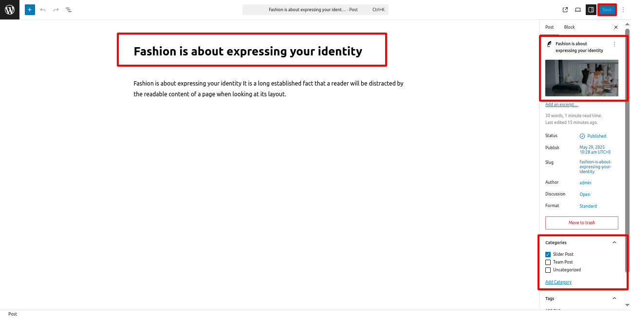 Select Slider Section Settings from Dashboard >> Post >> Add New .