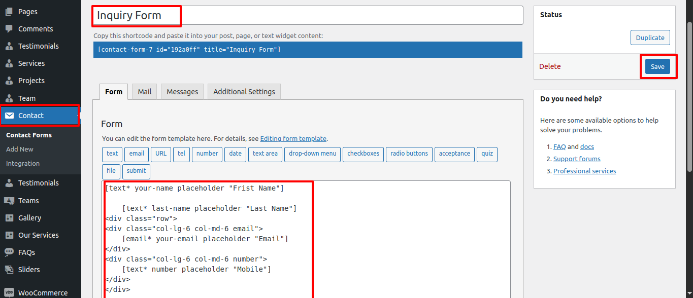 In this section the contact form is been created named as "Inquiry Form" for any changes of content you'll have to do following steps:
