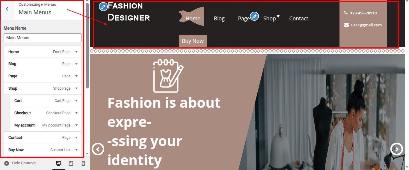 Go to Appearance >> Customize >> Theme Settings >> Header to access the Header Section Settings.