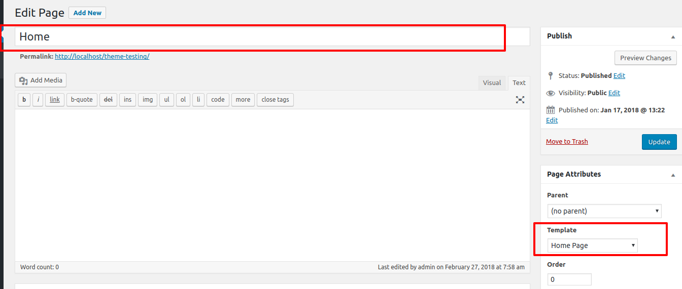 To set the home page: Go to Setting > Reading and select a static page for the Homepage under the Home Page Displays section.