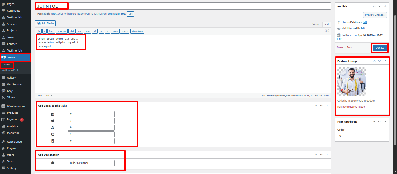 In this section the content is taken by the Post type named as "Team" for any changes of content you'll have to do following steps: