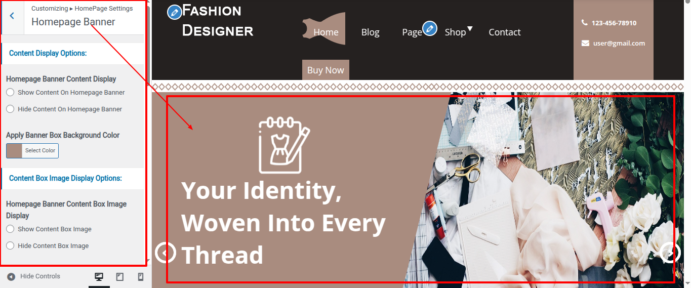 You can customise the slider's picture, title, and description in this area.
