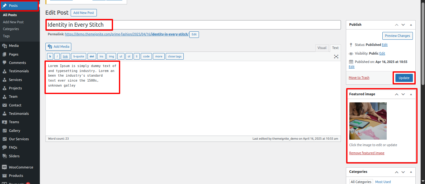 In this section the Posts is been created named as "Post" for any changes of content you'll have to do following steps: